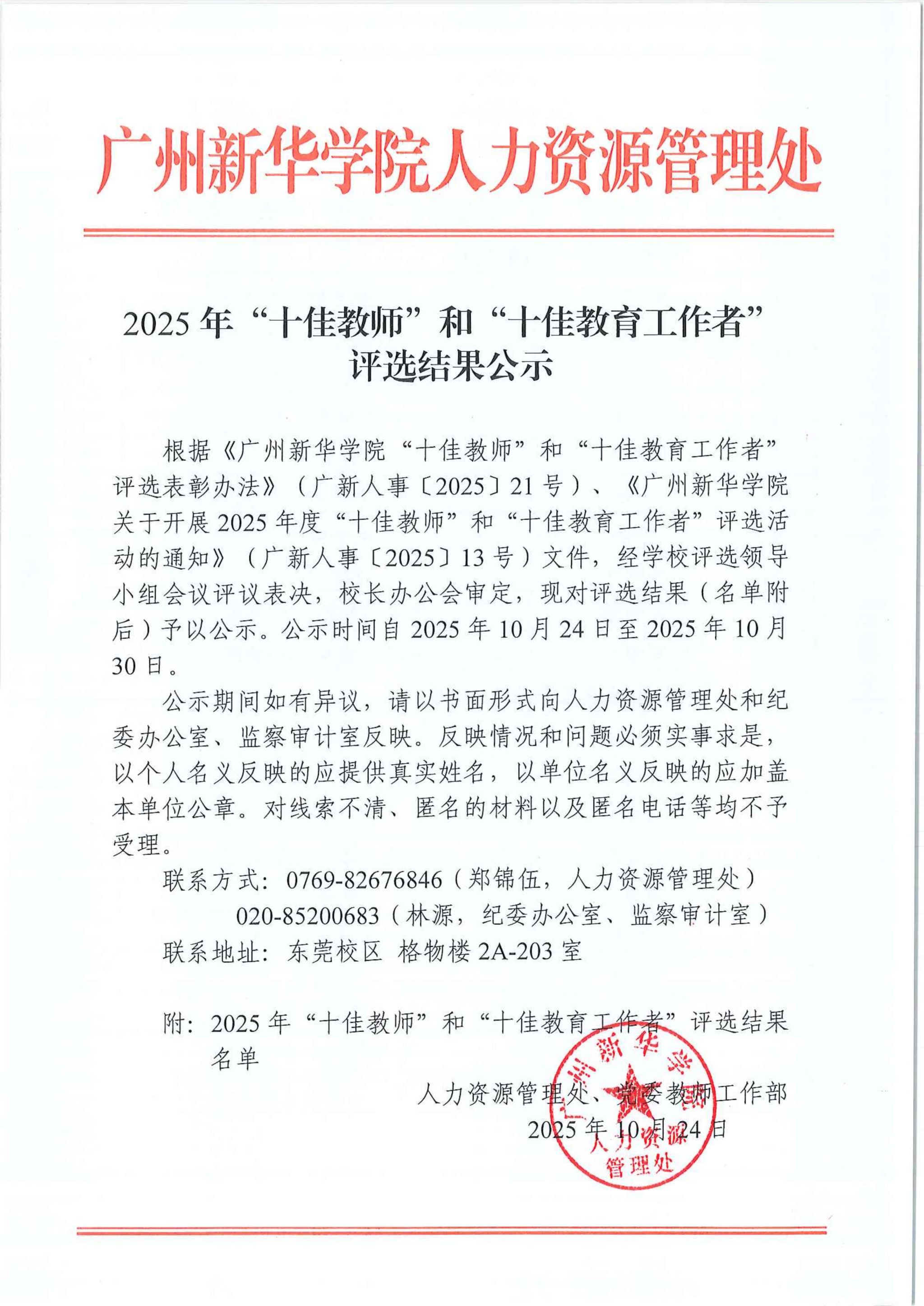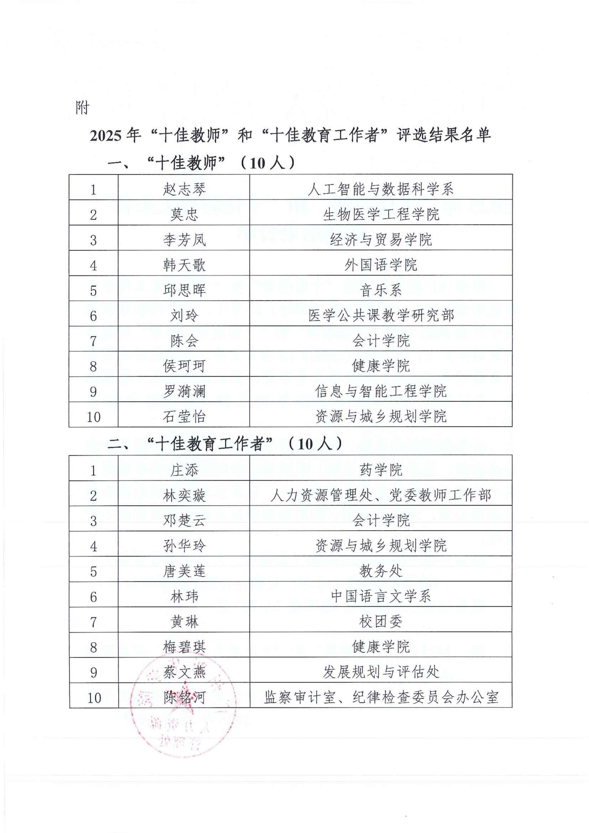 2025年“十佳教师”和“十佳教育工作者” 评选结果公示
